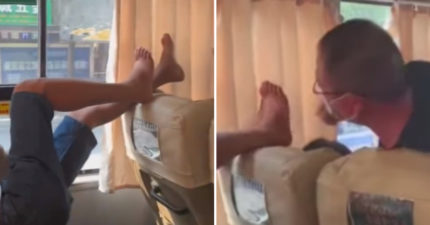 男搭公車「赤腳跨在前座女生椅背」 路人暴怒猛捶