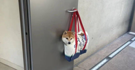 遛一半飼主突然想尿尿!「柴柴掛門把」被當明星圍拍牠一臉困惑