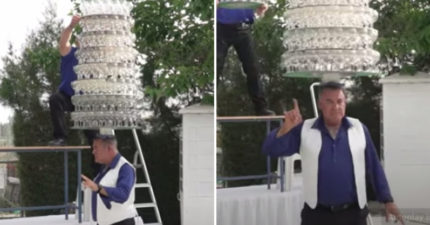 62歲阿北「頭頂317個玻璃杯」邊走邊跳舞 破金氏紀錄影片超狂