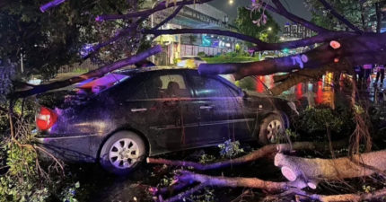 路樹從天而降!新北男「開車一半」當場被砸凹 車內父子現況曝