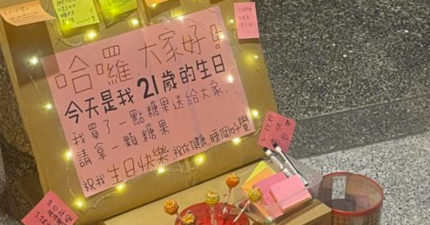 今天是我的生日!路上驚見紙箱「插滿棒棒糖」大方送路人 細看便利貼鼻酸了